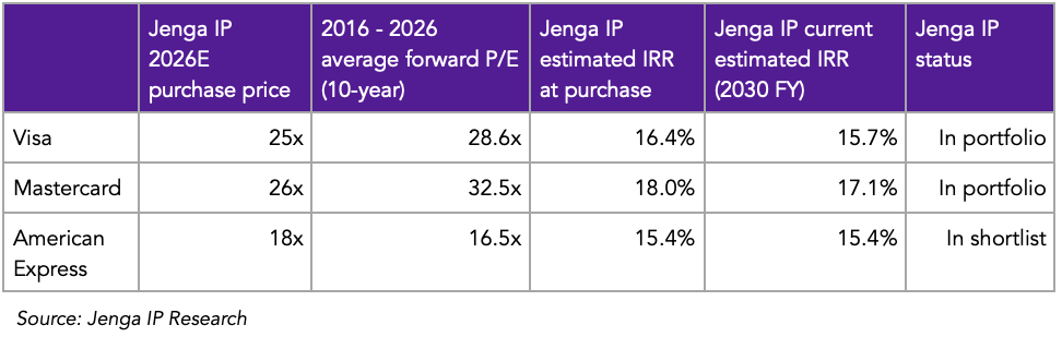 At the start of the research, only Visa met this target, but during the research, Mastercard joined the list through a combination of its share price decline and my improved understanding of its growth potential. Combined, both Mastercard and Visa currently make up 13% of the Jenga Global Fund.